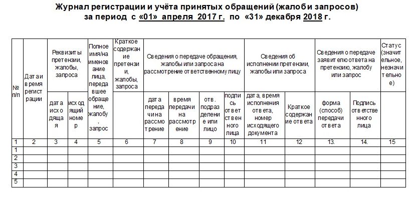 - Обращения подлежат обязательному рассмотрению и регистрации в Журнале регистрации и учёта обращений и жалоб (Приложение 7). Отказ в приеме, а также временное ограничение на прием и/или рассмотрение обращений не допускается.